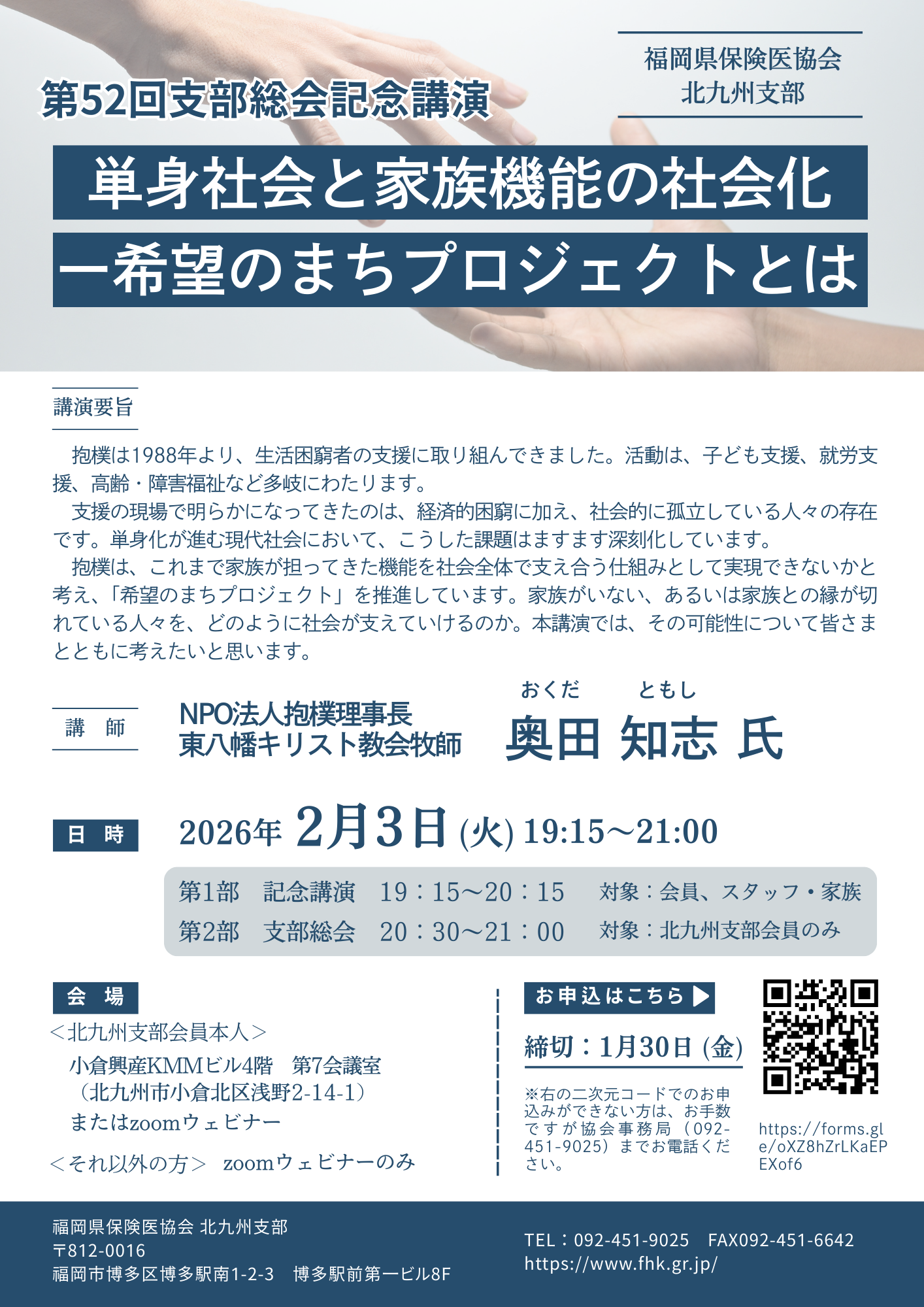 2/3(火)北九州支部総会記念講演「単身社会と家族機能の社会化-希望のまちプロジェクトとは」のご案内