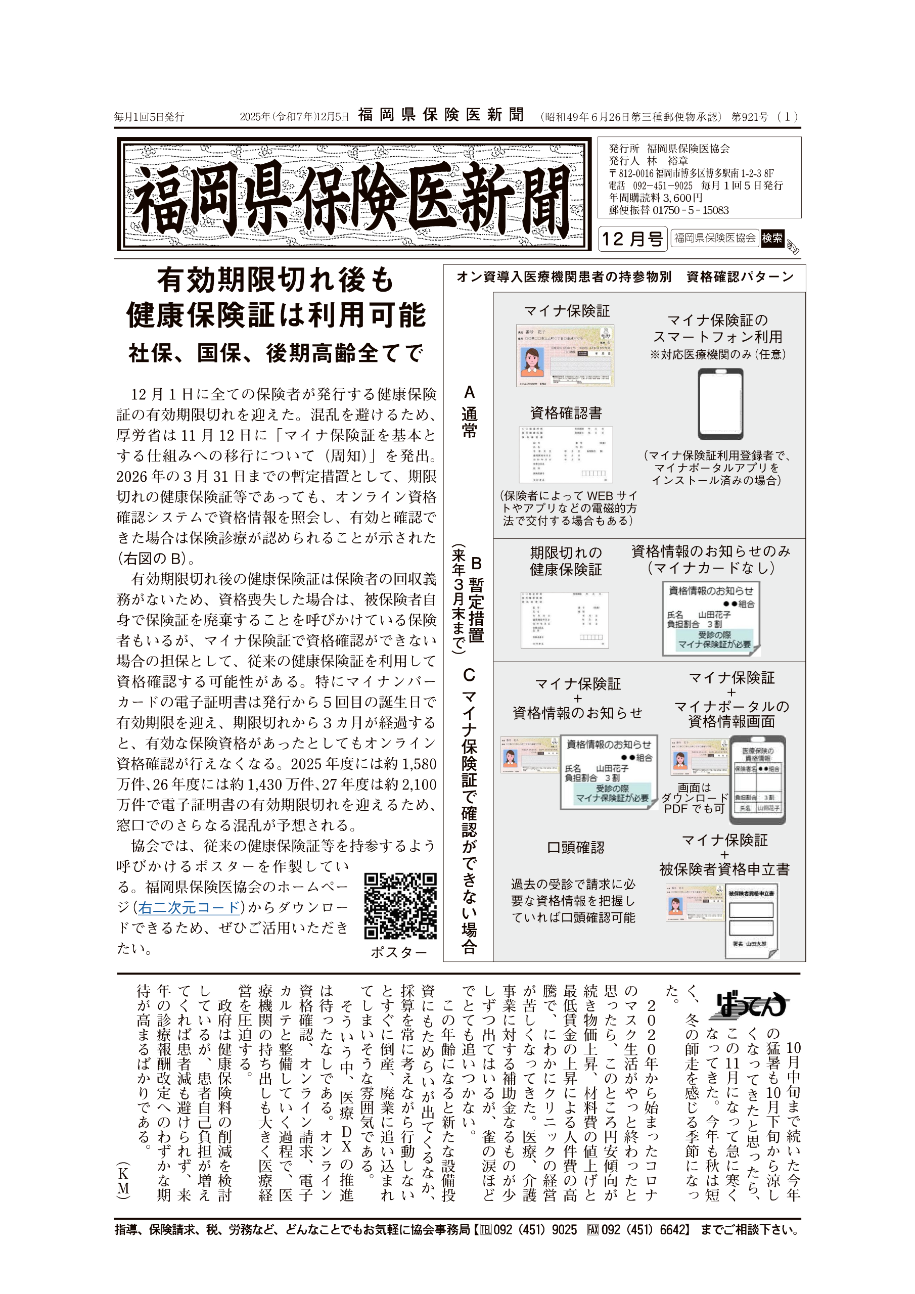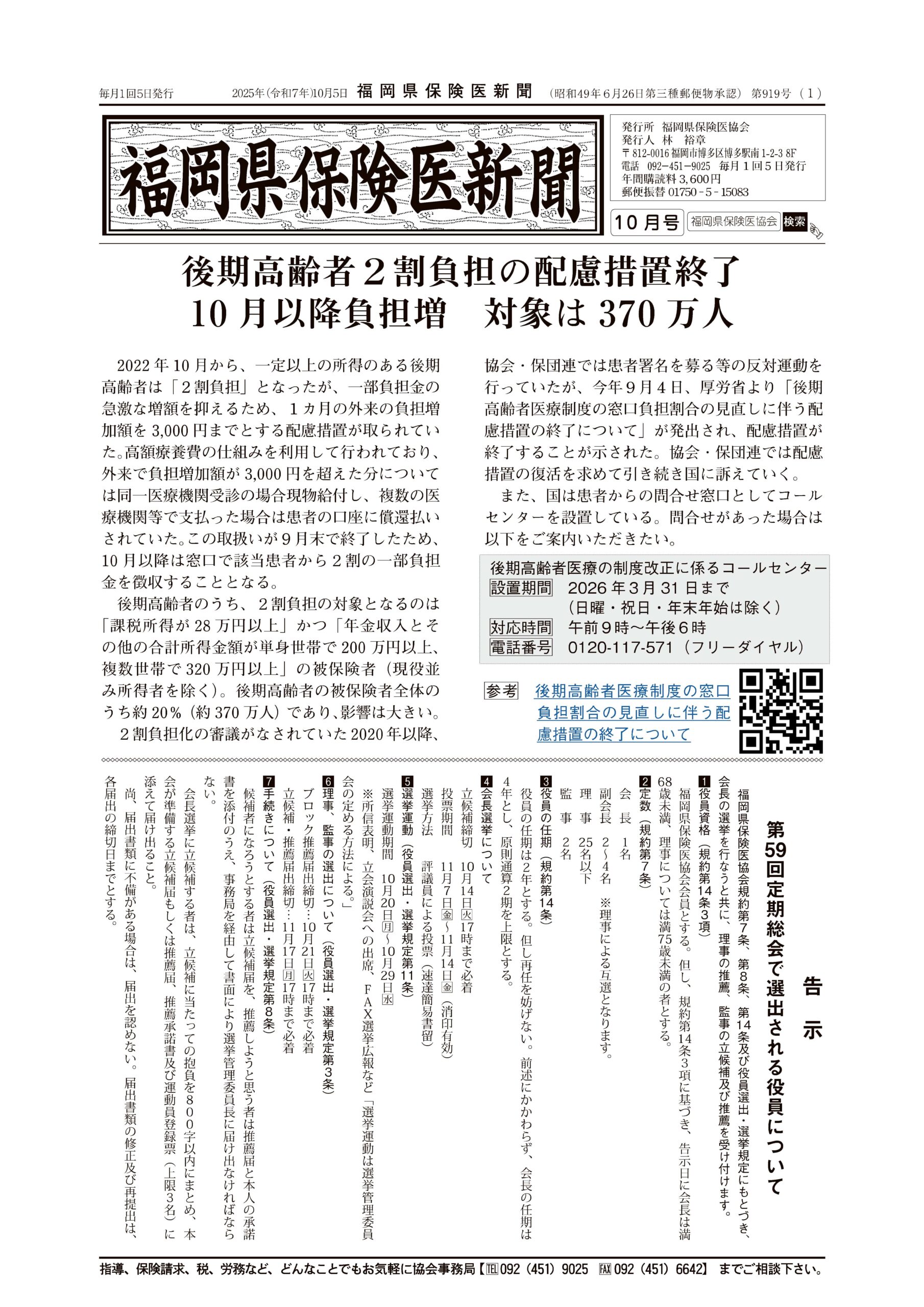 福岡県保険医協会では毎月5日に福岡県保険医新聞を発行しております。先生方のお手元に新聞が届く前から、協会ホームページで内容をご確認いただけるようになりました。